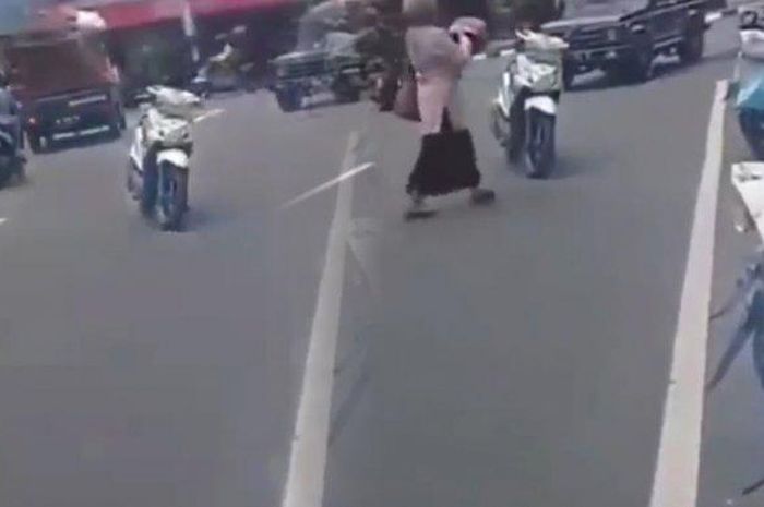 Gridmotor.id - Video emak-emak parkir motor di tengah jalan.
