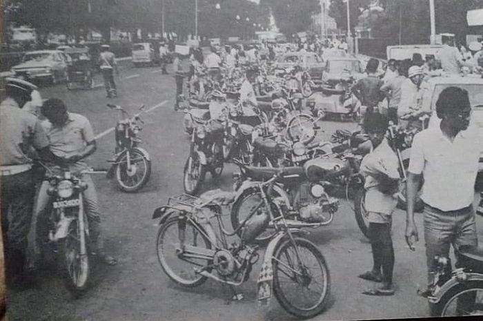 GridMotor.id - Jadul keren kali ini, beredar foto puluhan motor terjaring razia polisi di Jakarta pada tahun 1970-an.
