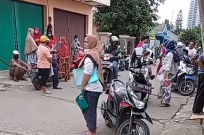 Beredar juga video pemotor mengantri untuk ambil bantuan pemerintah.
