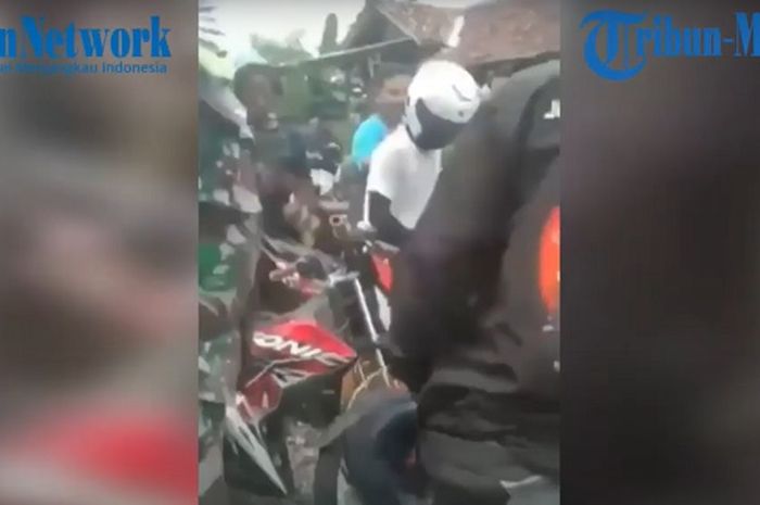 Sebuah video memperlihatkan ketegangan warga dengan sejumlah pemotor, Minggu (17/1/2021).