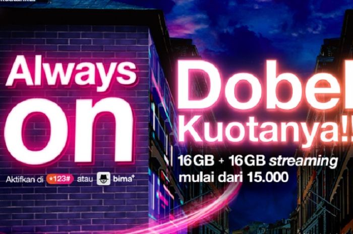 Kuota tersebut bisa didapatkan dengan mengisi ulang paket data AlwaysOn atau Kuota Happy.