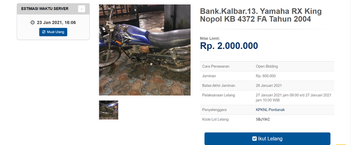 Pelaksaan lelang Yamaha RX-King dan kendaraan lainnya dimulai Rabu (27/1/2021).