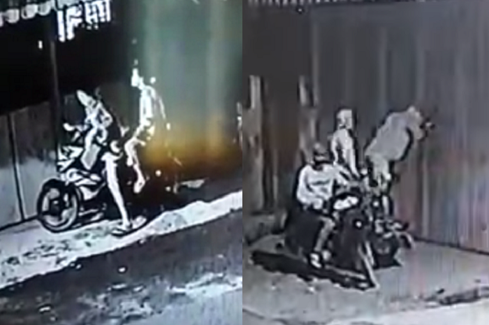 Pada video pertama, terlihat sindikat becak motor beraksi menggunakan dua motor bebek.