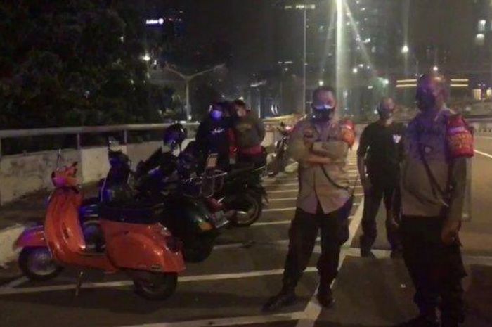 Gridmotor.id - Polisi bubarkan salah satu klub motor Vespa yang melakukan konvoi dan kopdar di bahu jalan saat PSBB ketat.