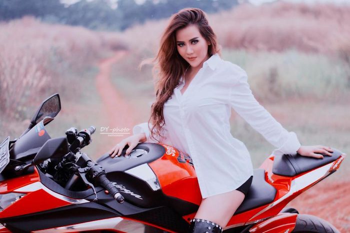 Grimotor.id - Potret penyanyi dangdut Nita Thalia di atas motor.
