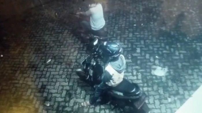 Dari rekaman CCTV tampak empat orang pelaku datang mengendarai dua motor.