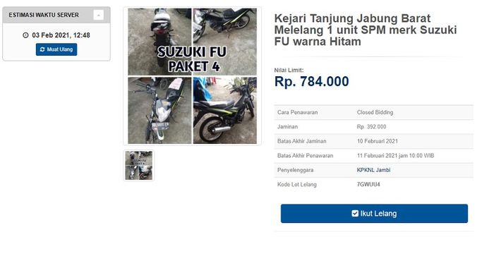 Buat yang berminat lelang ini masih ditunggu sampai tanggal 11 Februari 2021 pukul 10.00 WIB.