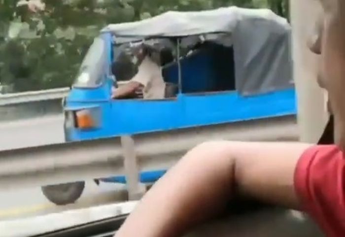 Bajaj tersebut tetap melaju dengan kecepatan yang cukup kencang.