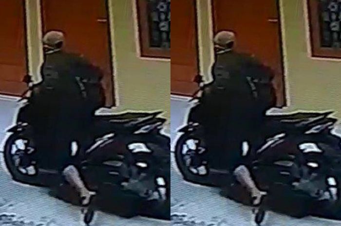 Rekaman CCTV memperlihatkan seorang pelaku masuk dan langsung menuju parkiran motor.