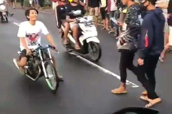 Gridmotor.id - Video balap liar gagal start, gara-gara sang joki kasih kode kalau ada polisi di sekitar lintasan tersebut.