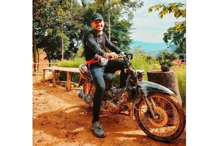 Presenter kondang Robby Purba pernah berpose di atas motor bebek yang sudah trondolan.