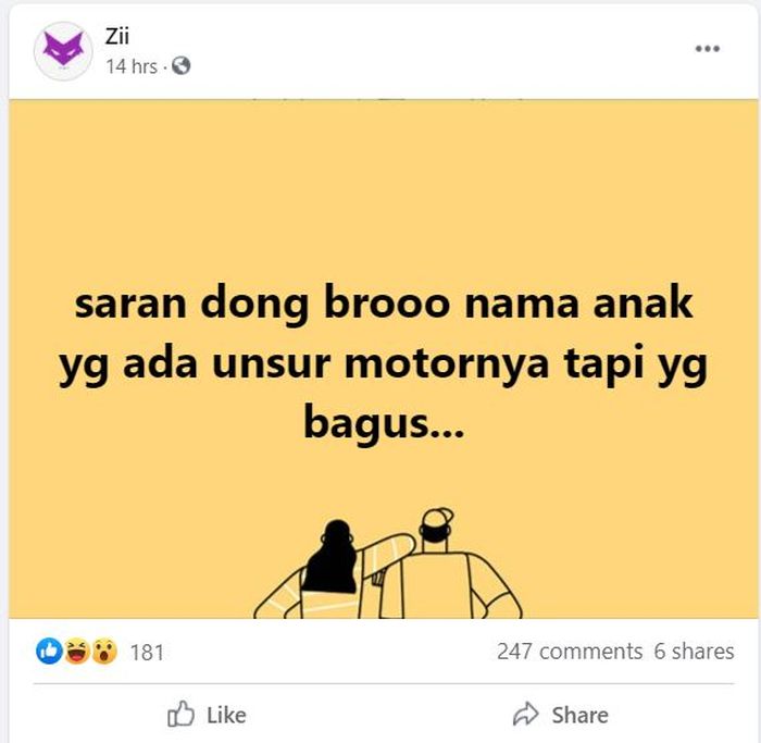 Netizen pun langsung kasih saran nama bayi yang mengandung unsur motor.
