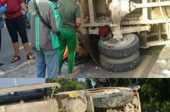 Gridmotor.id - Gara-gara rem mendadak, pasangan suami istri (pasutri) pemotor Honda BeAT terlindas truk.