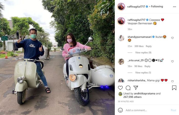 Terlihat dalam unggahan tersebut Raffi dan Nagita tampak sama-sama mengendarai motor mereka.