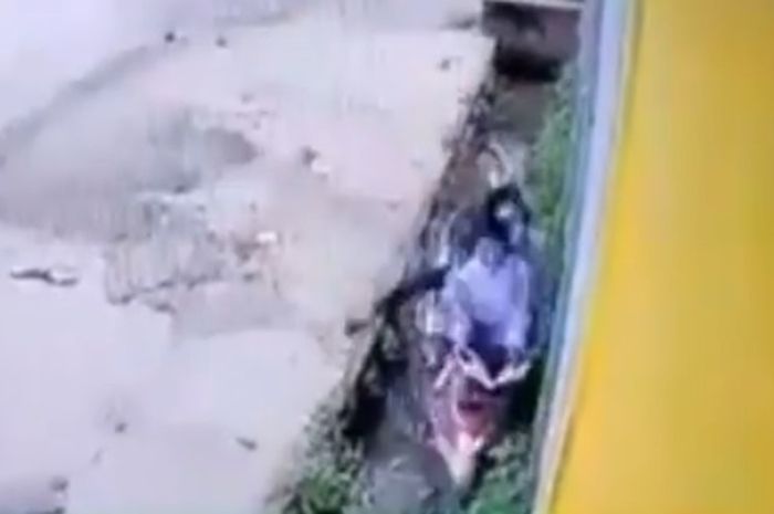 Motor tersebut terlihat oleng dan tak bisa dikendalikan pengendara.