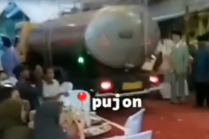 Lucunya saat acara berlangsung sebuah truk sedot WC menorobos tenda tersebut.
