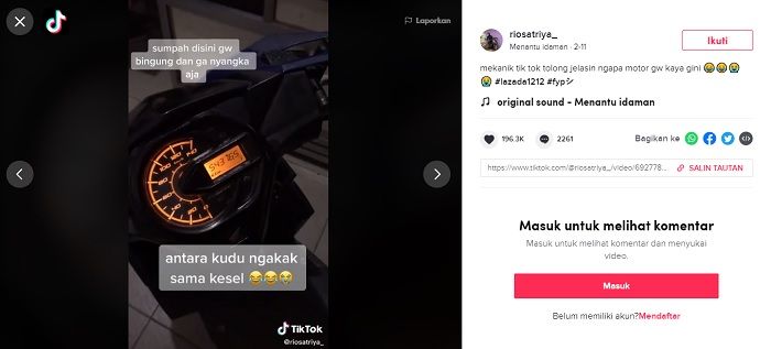"Setelah di cek ternyata sekring motornya yang kena," lanjut Rio.