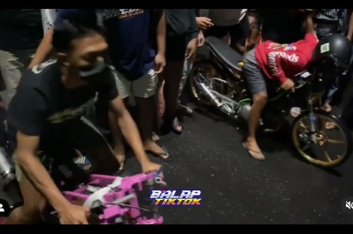 Dari video yang diunggah akun Instagram @balap_tiktok, Yamaha Jupiter MX melakukan start dengan sempurna.