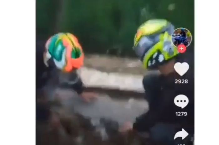 Dalam video terlihat pemotor sedang berhenti di sebuah jalan.