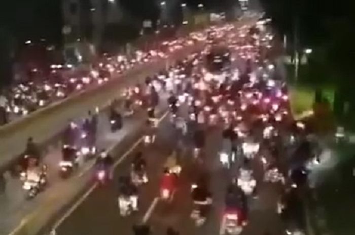 Diketahui, video tersebut diambil setelah bubaran partai antara Jupiter MX King Vs Satria F-150 yang gagal digelar, (4/3/2021) dini hari.