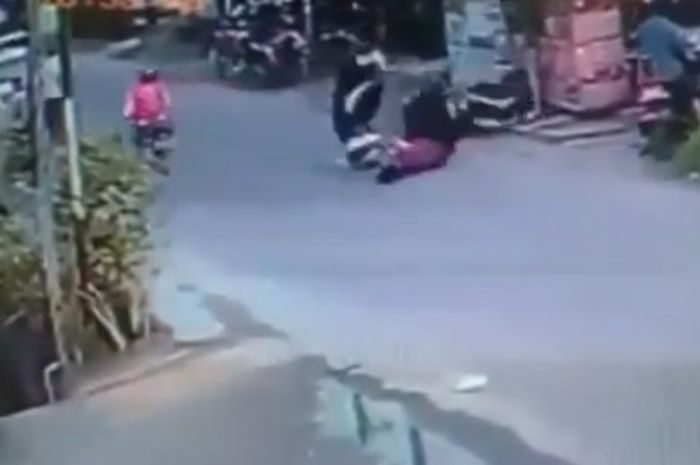Pada video awalnya terlihat pemotor Yamaha Aerox yang sedang keluar dari gang dan menyeberang jalan.