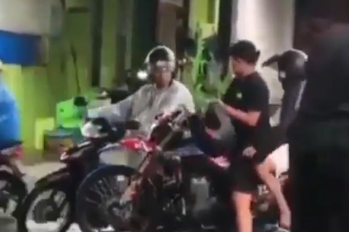 Terlihat dalam video dua pemotor yang berhenti dipinggir jalan.
