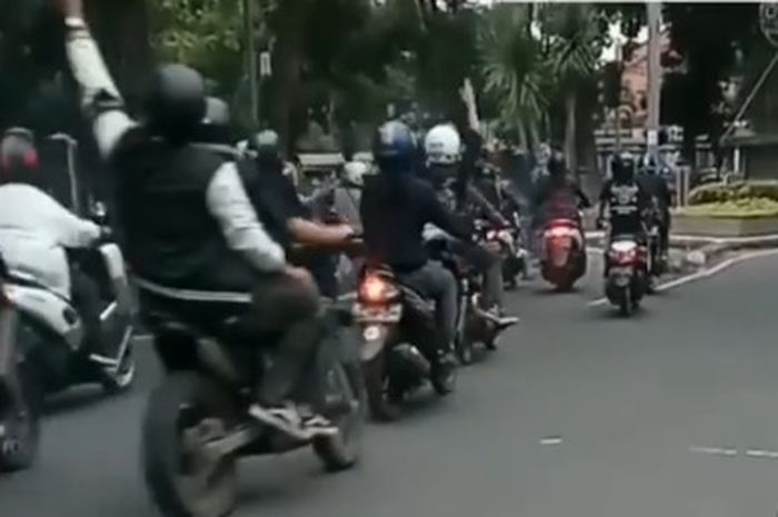 Gridmotor.id - Terungkap, ini gerombolan pemotor yang konvoi sambil kibarkan bendera di Bandung, Jawa Barat.