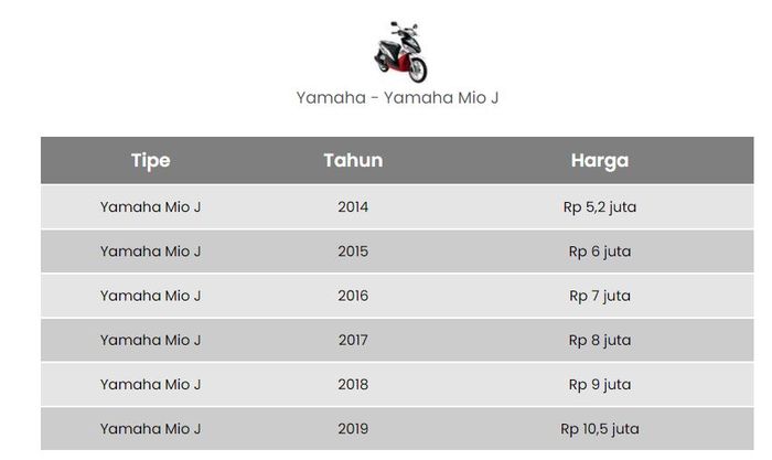 Dikutip dari Pricelist GridOto, Yamaha Mio J bekas dengan harga segitu dapat tahun 2014 - 2015.