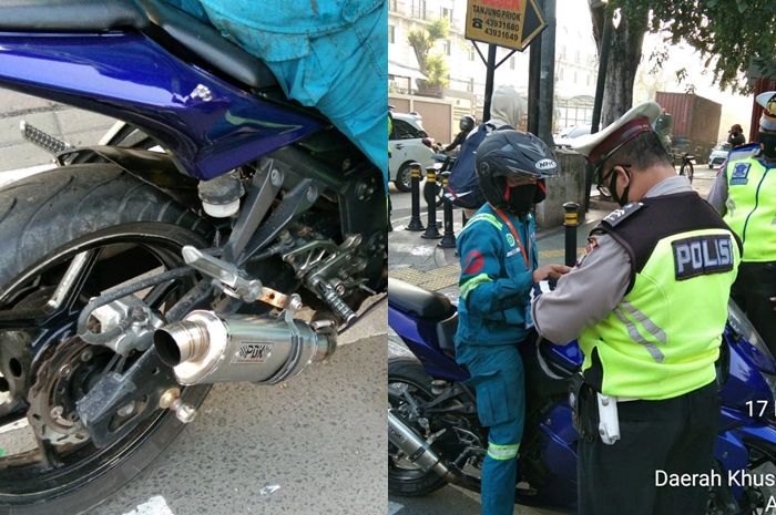 Gak cuma motor matic, motor sport berknalpot racing pun juga kena ciduk.