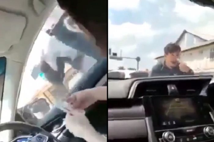 GridMotor.id - Geger pemotor disenggol mobil mengamuk dan pukul kaca mobil sampai retak.