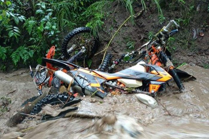 Sebanyak 30 sepeda motor trail tersapu arus banjir bandang