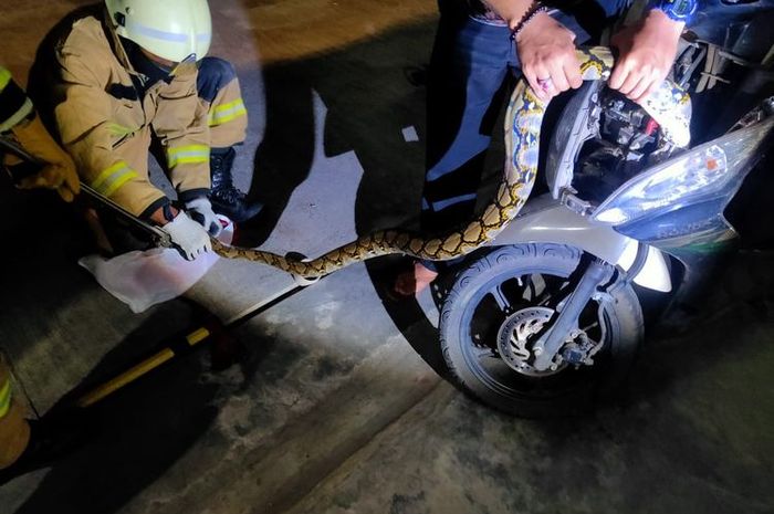 GridMotor.id - Seorang satpam di Tebet panik ada ular sanca masuk ke motor Honda Spacy miliknya.