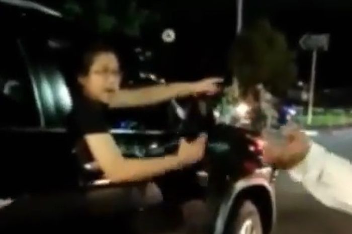 Dikutip dari akun tersebut, pengemudi mobil itu menabrak pemotor wanita yang mengendarai Honda Vario.