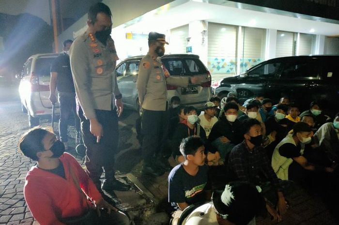 Petugas kepolisian mengamankan 40 pemuda yang hendak melakukan aksi balap liar di Jalan Kawan Lama, Kembangan Selatan, Jakarta Barat, pada Minggu (18/4/2021) dini hari.
