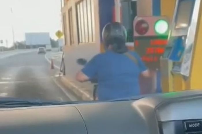 Gridmotor.id - Santai banget emak-emak pemotor masuk jalan tol, bahkan sempat bayar tol juga.