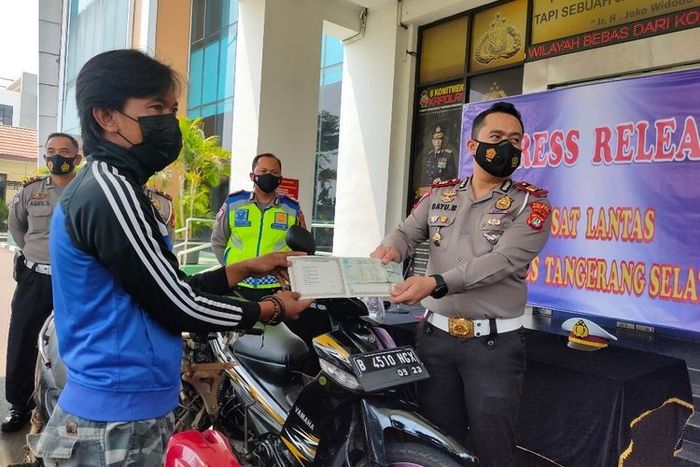 Akibat aksi berbahayanya itu, Polres Tangerang Selatan menilang Marwan.