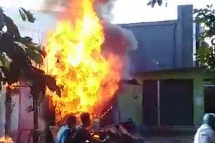 Bikin geger pemotor, sebuah pom bensin mini meledak dan hangus terbakar.