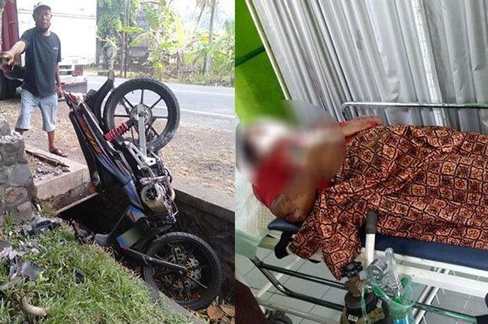 Korban yang tak menggunakan helm itu tewas di TKP setelah kepalanya membentur beton samping got.