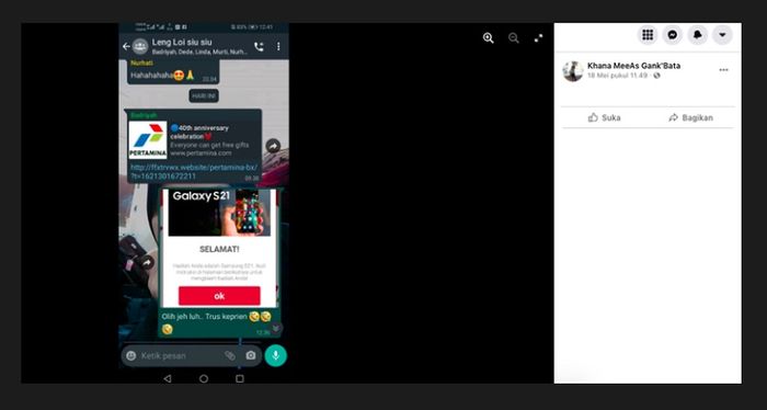 Akun tersebut mengunggah tangkapan layar percakapan WhatsApp, yang memperlihatkan hasil tangkapan layar pemberitahuan bahwa mendapatkan hadiah sebuah ponsel.