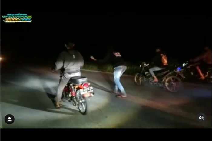 Aksi balap liar ini diunggah oleh akun Instagram @info_liaranperawang, pada (22/05/2021).