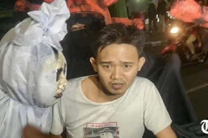Beredar di media sosial video pemotor ketakutan digiring pocong dan virus Corona.