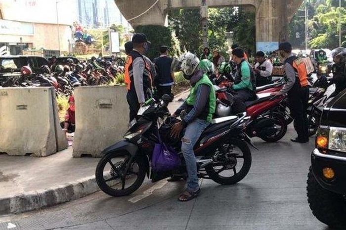 Kebanyakan dari mereka merupakan pengemudi ojek online (ojol) yang tengah menanti pesanan.