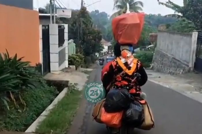Gridmotor.id - Video emak-emak dibonceng motor bawa barang gede di kepala.