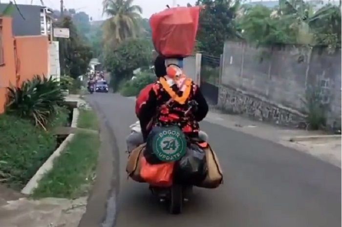 Bikers harus hati-hati kalau mau bawa barang saat naik motor.