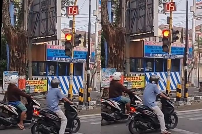 Gridmotor.id - Dua pemotor kena prank lampu lalu lintas.