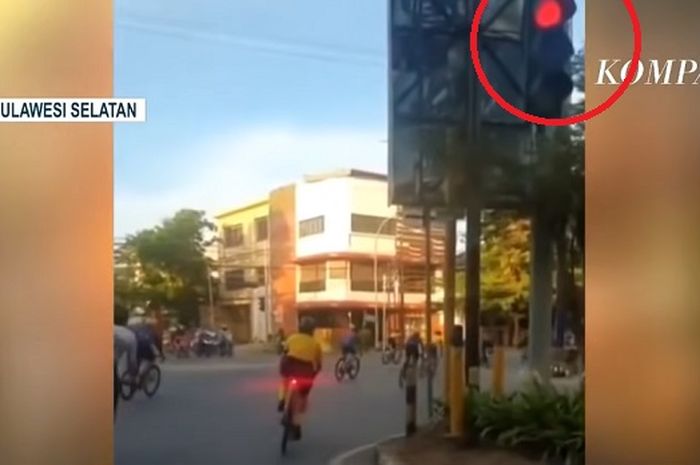 Video berdurasi 30 detik ini memperlihatkan rombongan pesepeda road bike menerobos lampu merah di Jalan Haji Bau, Kota Makassar.