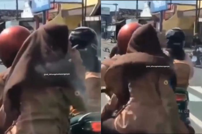 Salah satunya siswi yang diboncengi pamer merokok saat berhenti di lampu lalu lintas.