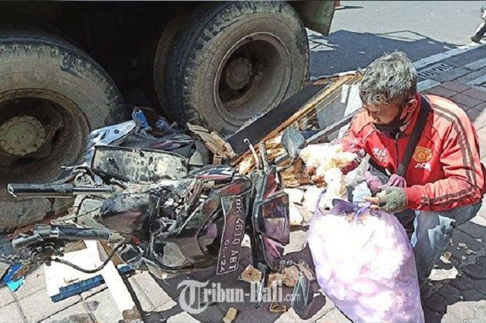 GridMotor.id - Motor Honda Vario milik penjual kerupuk ambyar ditabrak truk molen, endingnya begini bro.