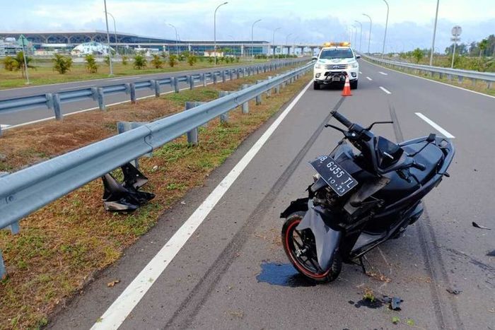 Avsec mengamankan pengemudi Vario ini setelah jatuh di dalam area bandara dan menyerahkannya ke Polsek Temon.