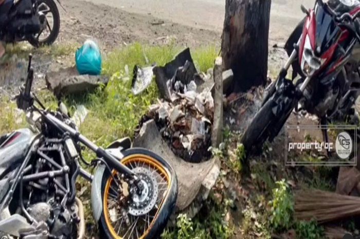 Dua motor sport, yaitu Honda CB150R dan Yamaha V-Ixion langsung rusak parah.